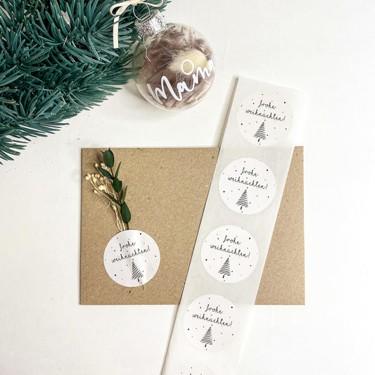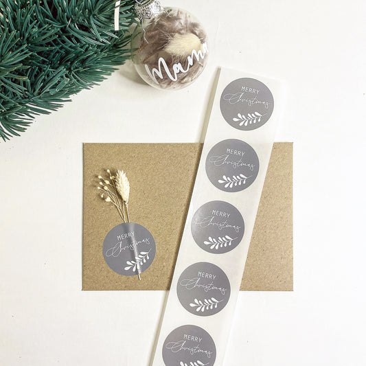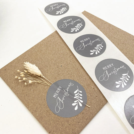 Aufkleber mit Trockenblumen Frohe Weihnachten - Weiß