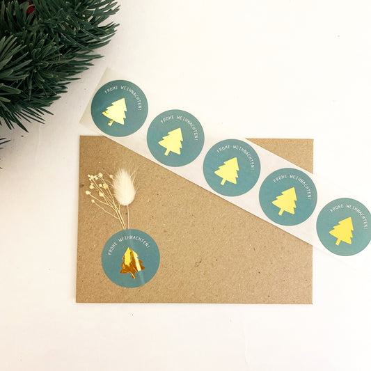 Aufkleber mit Trockenblumen Frohe Weihnachten - Gold